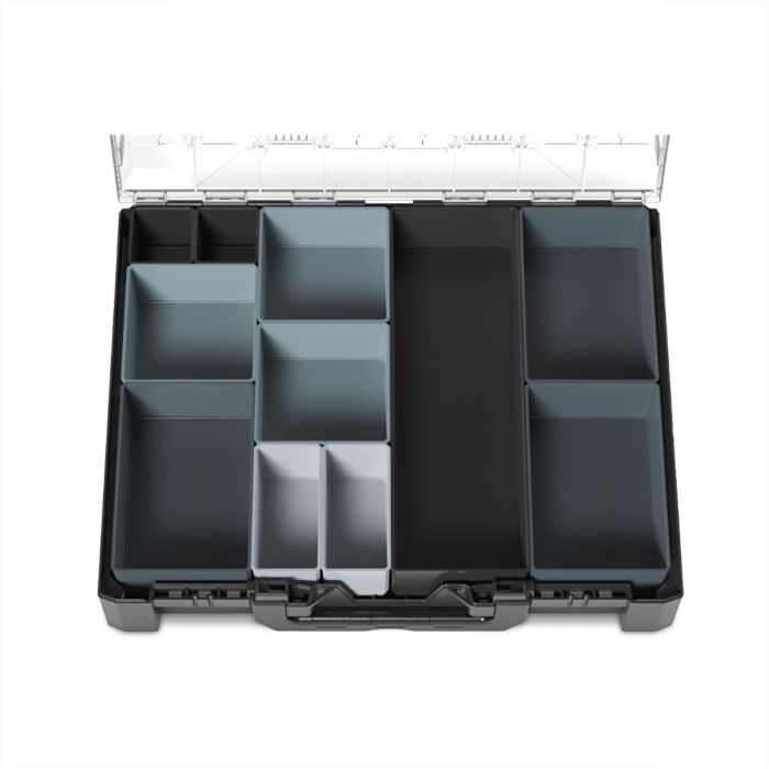 Zur individuellen Gestaltung Ihres Kleinteilekoffers metaBOX 95 M steht Ihnen das SET 1 der Einsatzkästen XS bis XL zur Verfügung. Die Einsatzkästen in den 5 verschiedenen Größen bieten Ihnen für jedes Arbeitsmaterial die passende Größe. Sie können individuell in die metaBOX 95 M eingesetzt werden und schließen bündig mit dem durchsichtigen Deckel der Box ab - Ihre Sortierung bleibt also exakt so, wie Sie sie gestalten. Sie haben ihren Werkzeugkoffer metaBOX so immer gut sortiert und geordnet dabei.