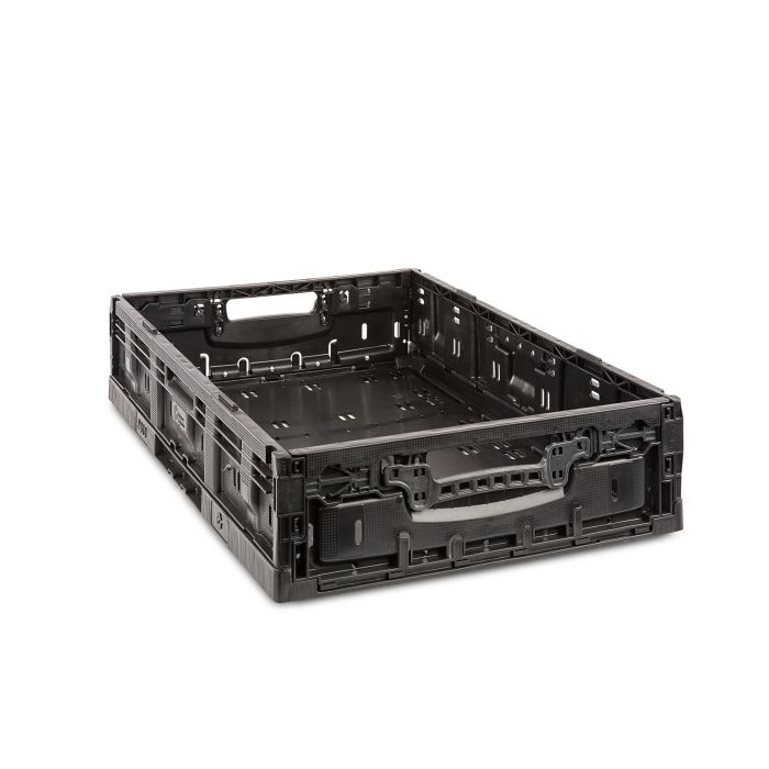 Unsere Kunststoff-Klappkisten in schwarz sind sehr stabil und für den professionellen Einsatz konzipiert. Die Stapelboxen können hohe Auflasten tragen, da die Seitenwände jeweils aus einem Stück gefertigt sind. Mit dem innovativen Einhand-Öffnungsmechanismus “Active-Lock” lassen sich die Seitenwände leicht auf- und zuklappen. Der schnelle und effektive Klappmechanismus erspart wertvolle Zeit, zum Beispiel beim Zusammenlegen für den Rücktransport. Die Faltkiste besitzt große Griffmulden für komfortables Tragen.