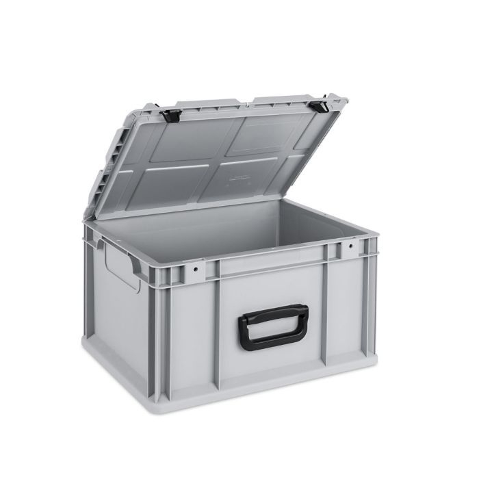 Eurobox, Klappdeckel, 2 Scharniere, 2 Schiebeschnappverschlüsse