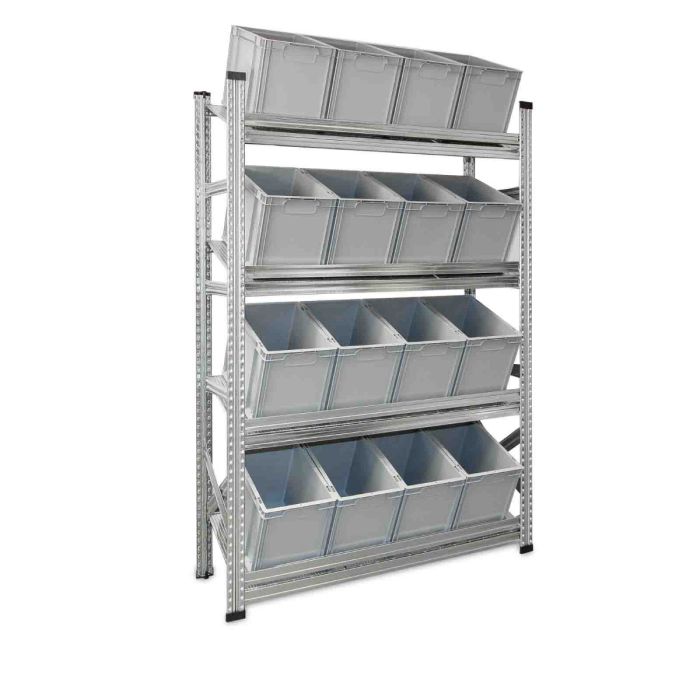 Schrägboden Grundregal Tiefe 400 mit 4 Fachböden für Euroboxen NextGen