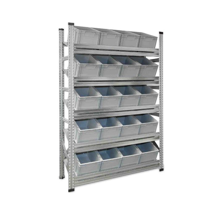 Schrägboden Grundregal Tiefe 400 mit 5 Fachböden für Euroboxen NextGen