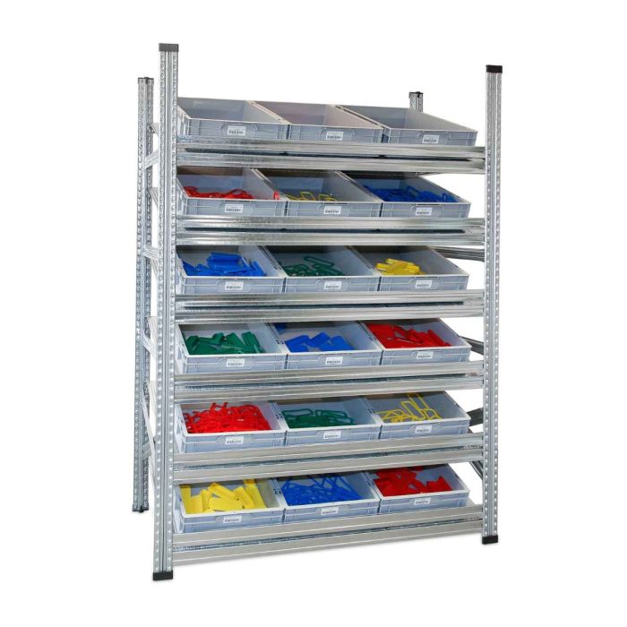 Schrägboden Grundregal Tiefe 600 mit 6 Fachböden für Euroboxen NextGen