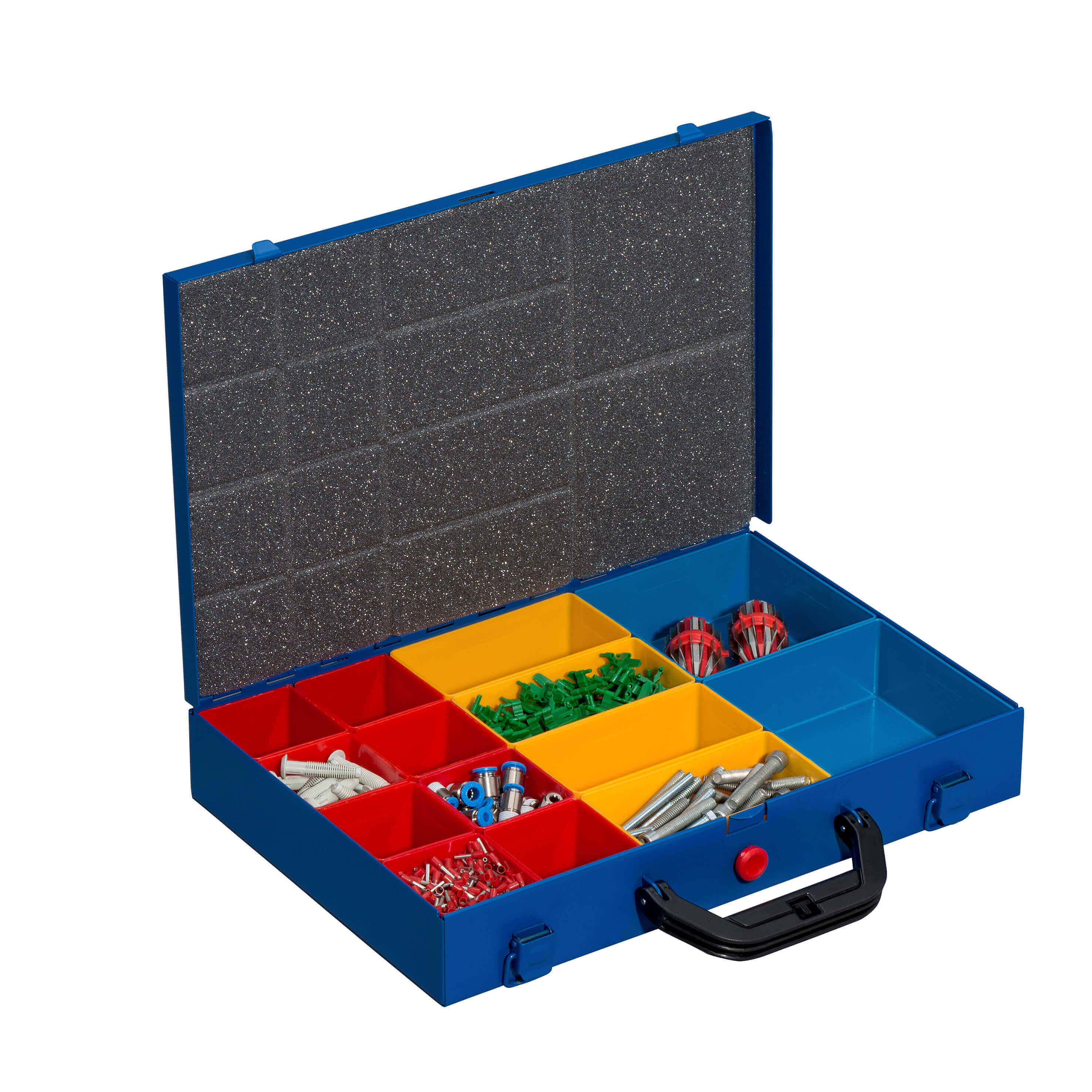 Ebenfalls optimal zur Aufbewahrung von Kleinteilen für die Werkstatt sind unsere Sortierkästen aus Kunststoff sowie unsere Kleinteilekoffer aus Metall. Die Sortierkästen stehen in verschiedenen Varianten zur Verfügung. Sie verfügen über vorgegebene Fächer, die Sie mit Trennstegen teilweise flexibel weiter einteilen können. Die Fächer schließen fest mit dem Deckel ab, sodass die Kleinteile auch beim Transport in ihren Fächern bleiben und nicht durcheinandergeraten. Ein noch flexibleres Sortiersystem zur Kleinteile-Aufbewahrung in der Werkstatt sind unsere Kleinteilekoffer aus Metall. Die Profi-Kleinteilekoffer können mit herausnehmbaren Einsatzboxen ganz nach Belieben eingeteilt werden. Sie können die einzelnen Einsätze bei Bedarf für Ihre Tätigkeiten entnehmen und anschließend wieder bequem im Koffer verstauen.