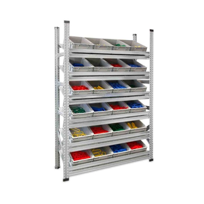 Schrägboden Grundregal Tiefe 400 mit 6 Fachböden für Euroboxen NextGen